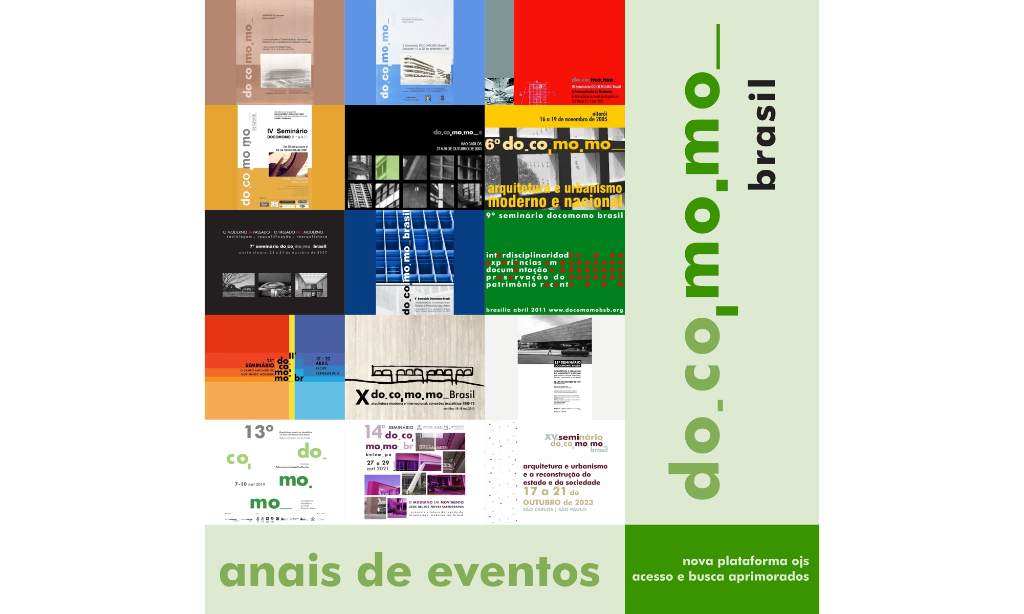 Temos a satisfação de anunciar uma grande novidade na forma como você acessa o acervo histórico dos anais de nossos eventos! Os anais que antes eram disponibilizados em formato HTML simples foram migrados e organizados para o sistema Open Journal Systems (OJS) — o mesmo usado na Revista Docomomo Brasil.